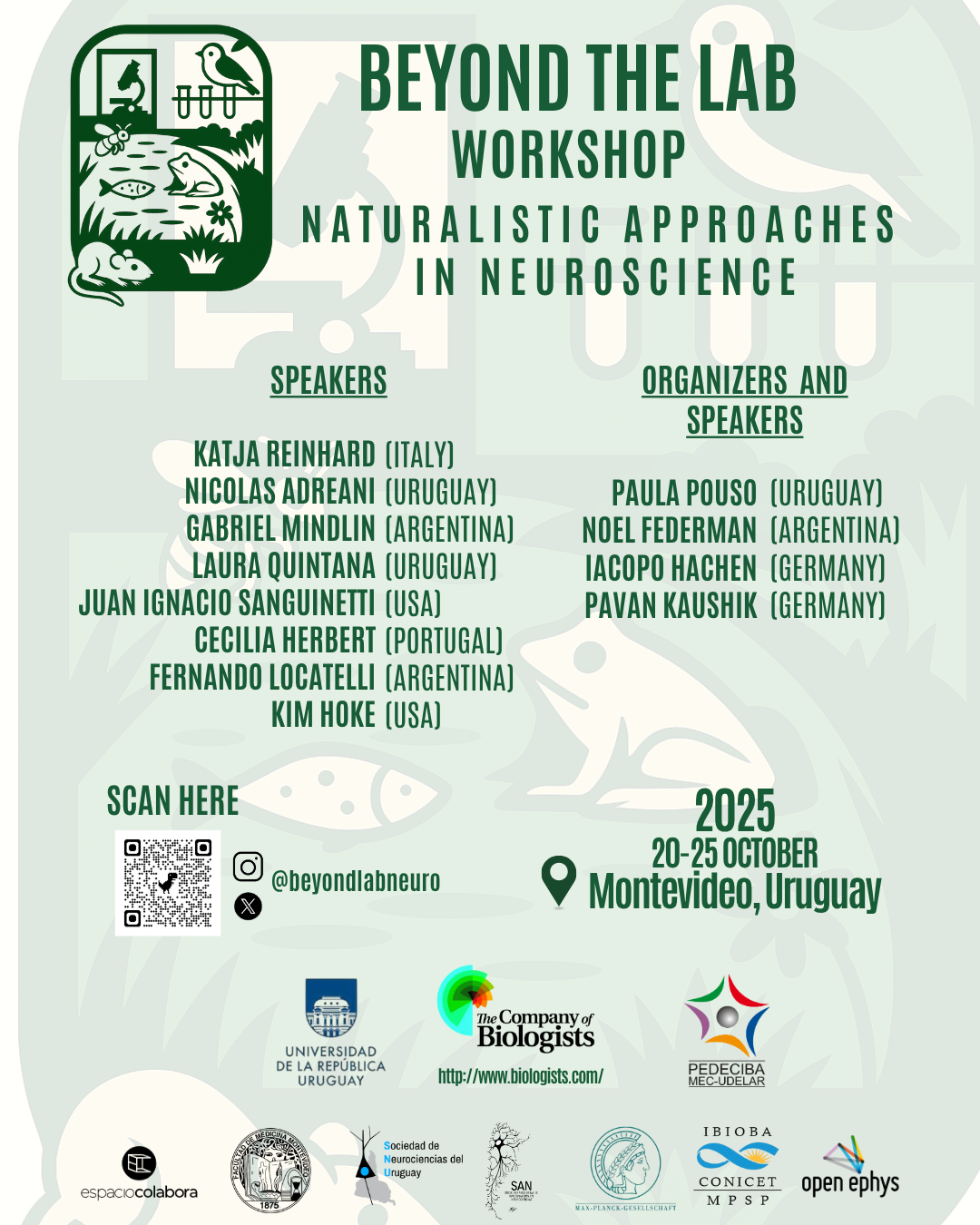 Estamos muy contentos de anunciar el workshop “Beyond the Lab: Naturalistic Approaches in Neuroscience”, que se realizará del 20 al 25 de octubre de 2025, en Montevideo, Uruguay.