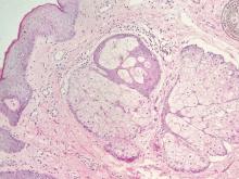 Acinos mucosos en un corte de lengua, a mayor aumento. Se...